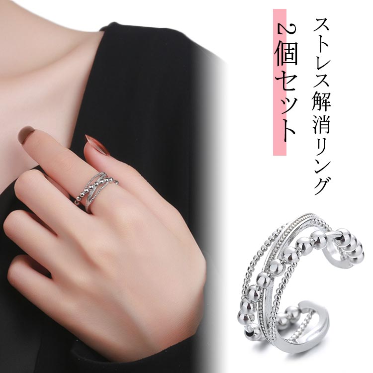 ビーズ付き 回転 ストレス解消 2個セット リング ストレス解消リング ステンレススチール 可動ランナー ジュエリー ユニ 調節可能 心配 心のリラックス ファッションアイテム おしゃれ 不安