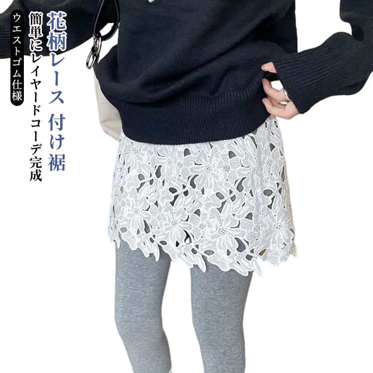 付け裾 レース レディース レイヤード 重ね着風 花柄 つけ裾 お尻が隠れる オシャレ 可愛い 体型カバー ウエストゴム