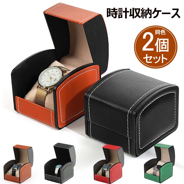 同色2個セット 腕時計 ケース 1本収納 時計ケース ギフトボックス プレゼント用 ウォッチケース 保存箱 持ち運び レザー 材質 コレクションケース クッション付 耐衝撃 携帯用