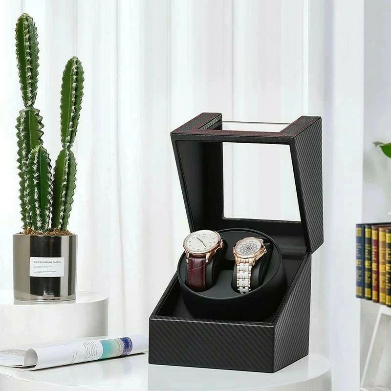 高級感あふれるウォッチワインダーで自動巻き時計を収納。超静音設計で寝室でも快適に使用可能。