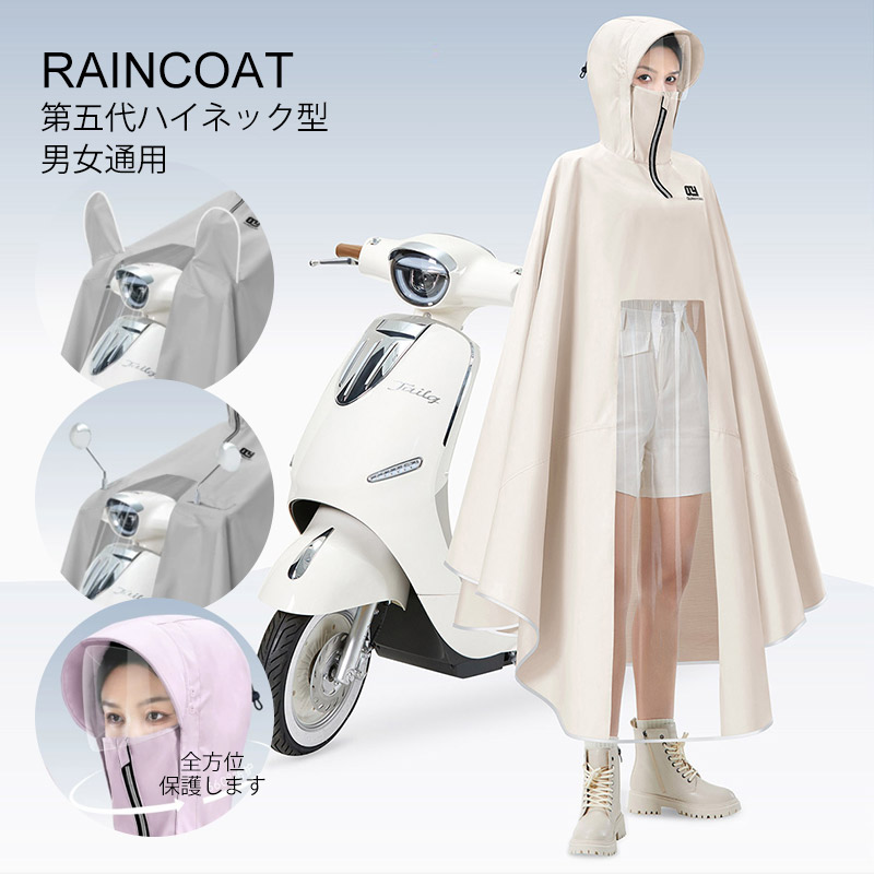 バイク スクーター 自転車 サイクル レインウェア レイングッズ 雨具 雨用ウェア 男女兼用 雨対策 透明フェースガード 取り外し可能 バックミラー対応可能