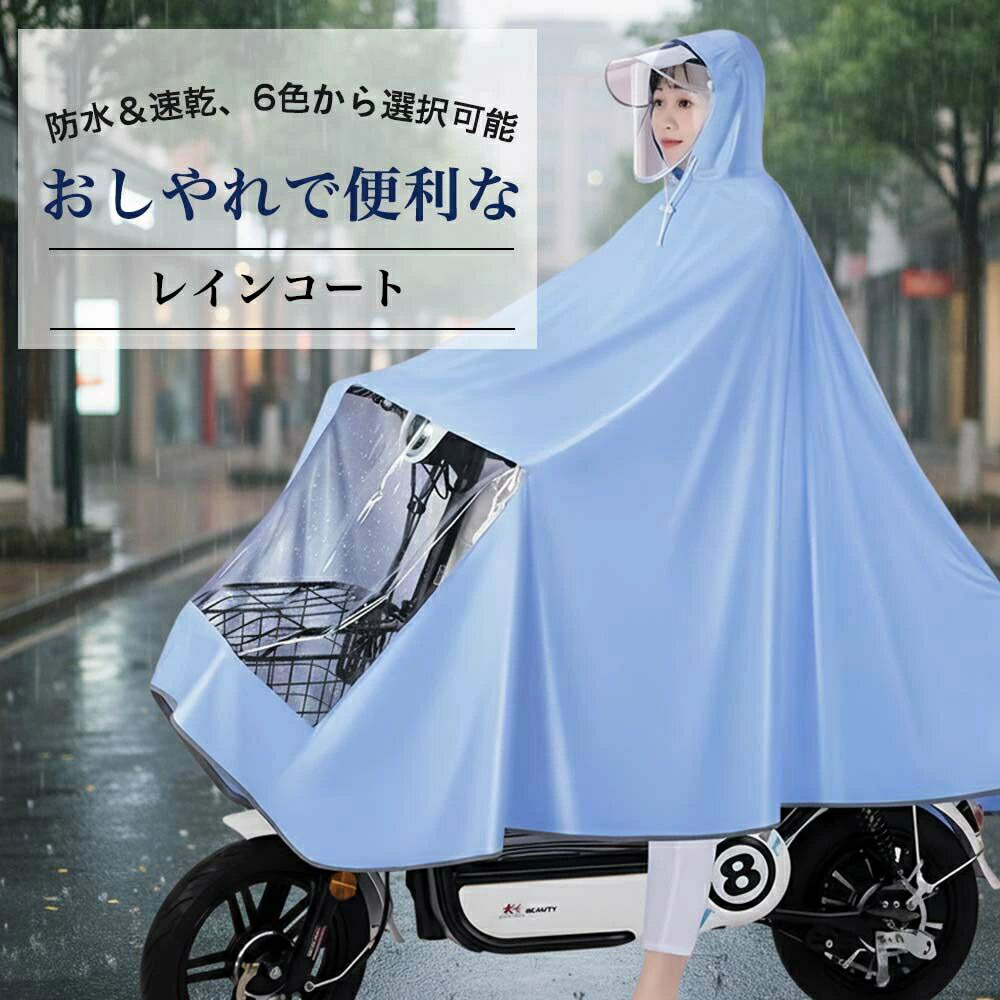レインコート 自転車 レインウェア レイン ポンチョ バイク用 バックミラー ロング丈 視界良好 濡れない フェースガード ツバ カッパ 透明バイザー 軽量 完全 大きいサイズ