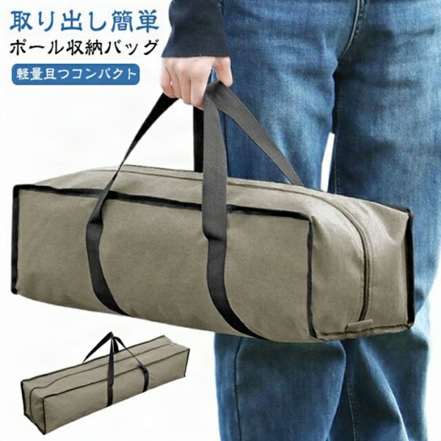 タープポール テントポールバッグ 多機能 収納バッグ ポールキャリングケース ランタンフック テントポール収納袋 収納袋 釣り竿 キャンプ アウトドア 折りたたみ キャリーバッグ