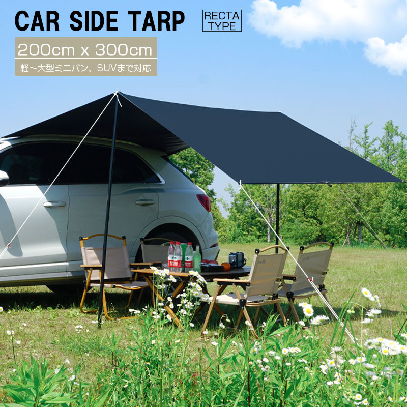 タープ テント 車用 連結 フルクローズ 耐水 カット 日よけ 簡単 カーサイドテント サイドオーニング キャンプ テント ミニバン 軽自動車