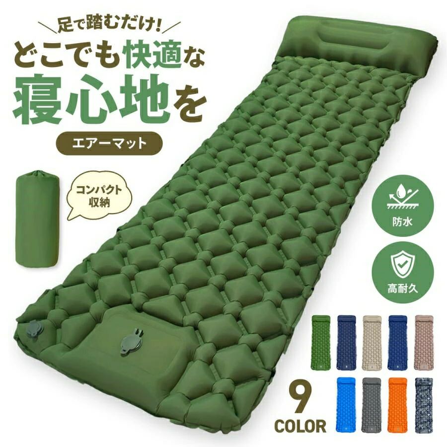 エアーマット キャンプマット 厚手 足踏み式 キャンプ アウトドア 車中泊 マット 軽量 枕付き折 コンパクト 災害用 地震対策 連結可能