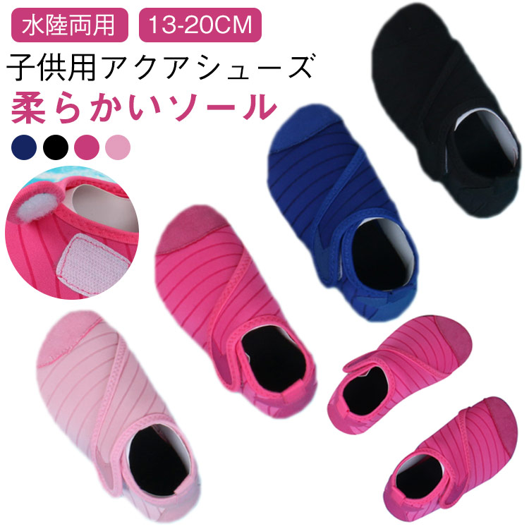 マリンシューズ キッズ マジックテープ ウォーターシューズ ビーチ シューズ アクア 水陸両用 滑らない ゴム底 サイズ調節可 軽量 通気性 ケガ防止 取り外せる 中敷き 子供 川 磯 洗いやすい