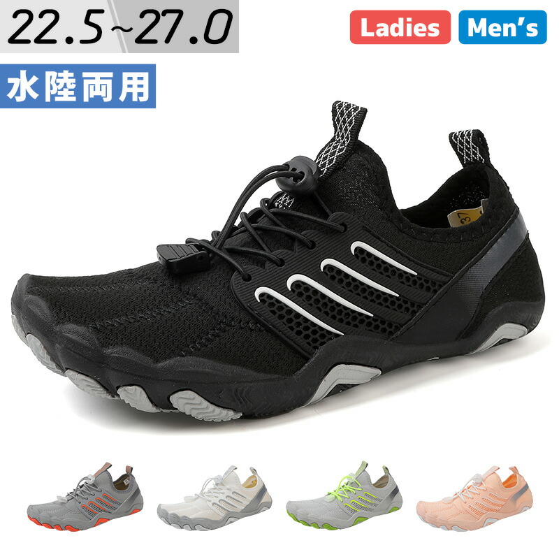 マリンシューズ レディース メンズ 水陸両用 靴 軽量 アクアシューズ サーフシューズ 速乾 排水機能 紐 コードストッパー 屈曲性 ゴム 滑りにくい インソール 22.5cm 23cm ヒールループ