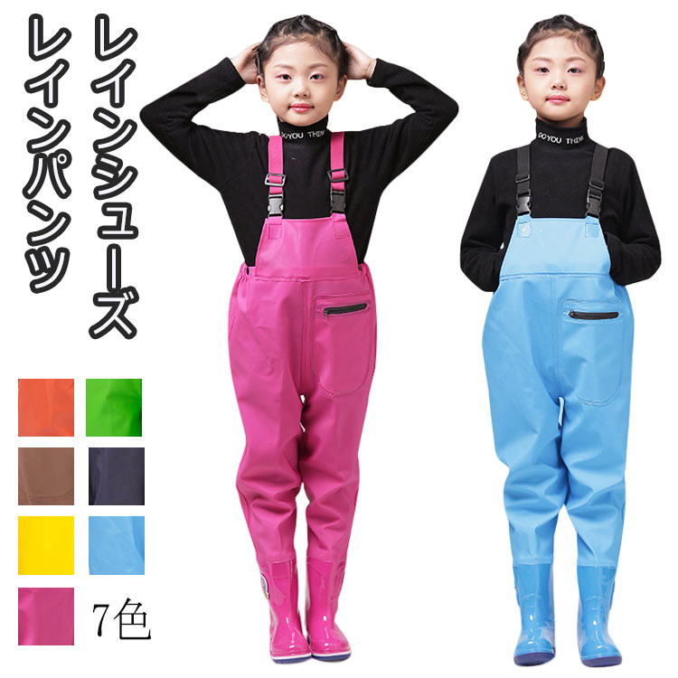 子供用 胴付き 長靴 チェスト ハイ ウェーダー 女の子 男の子 キッズ 靴付き 防水 軽量 ポケット付き レイン ウエア パンツ 雨具 雨の日 梅雨 アウトドア 水遊び 川 通学