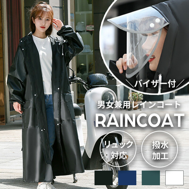 レディース レインコート 自転車 梅雨対策 リュック対応 学生 ロング丈 バイザー付き おしゃれ 雨具 ポンチョ メンズ カッパ