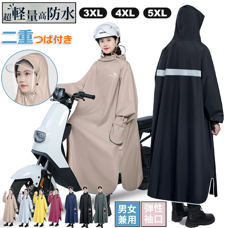 男女兼用 レインコート ロング 超撥水 防水防風 自転車 バイク 通勤通学 レインポンチョ 大きいサイズ M-2XL 軽量