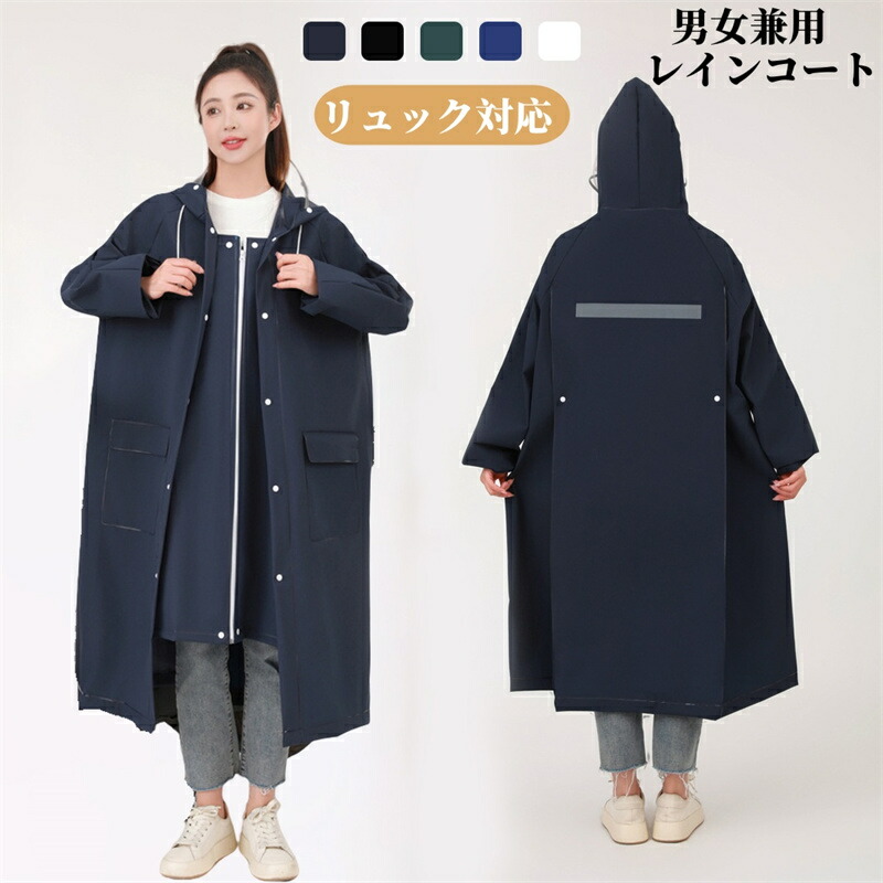 レインコート 自転車 レディース メンズ 通勤 レインポンチョ ロング 反射テープ リュック対応 ファスナ一 ボタン おしゃれ キャンプ 野外 携帯 大きいサイズ レインウェア カッパ バイザー 軽量
