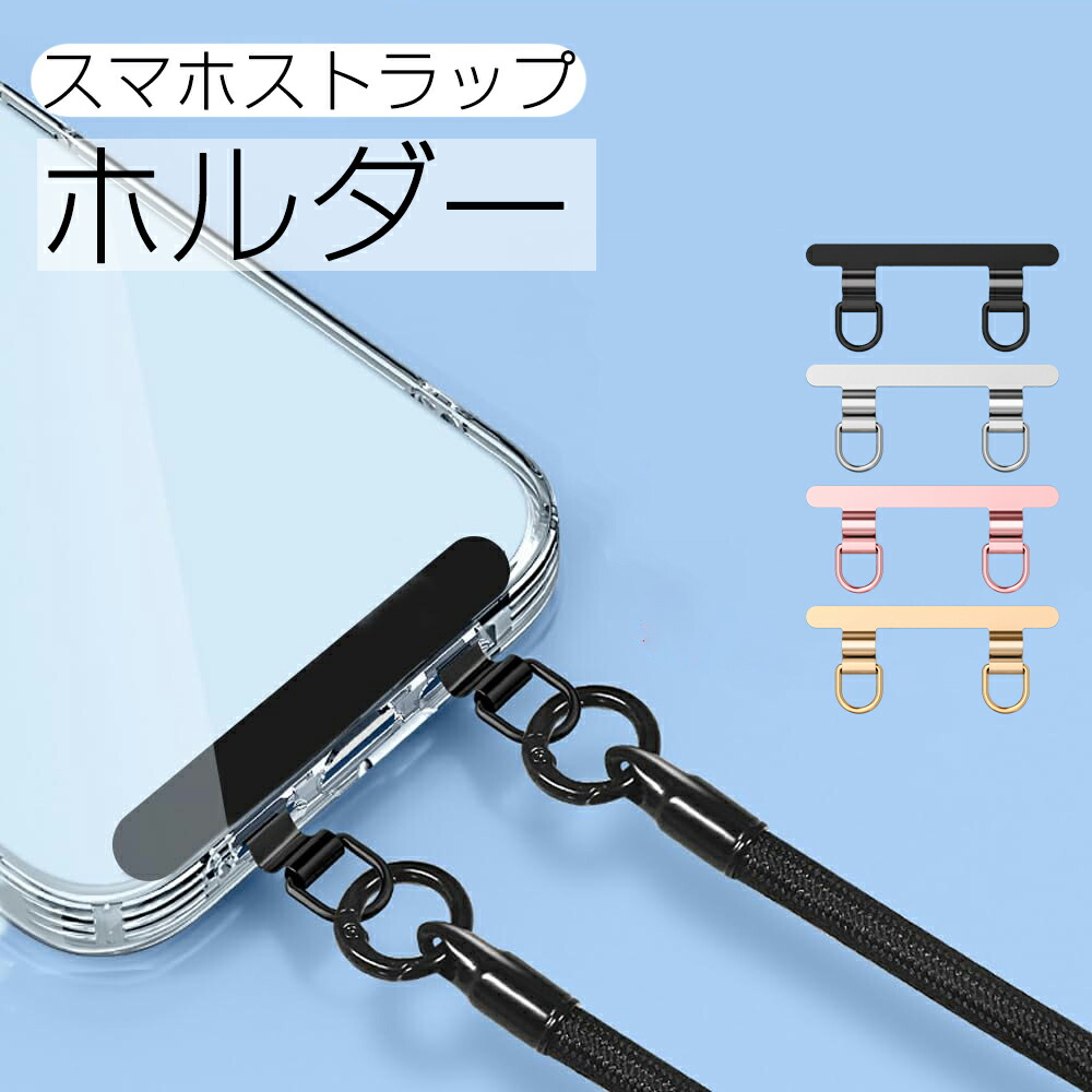 2口タイプ スマホストラップホルダー 携帯 ショルダーストラップ リングストラップ ステンレス製 0.4mm 超薄型 タグパッチ 金属製 挟むだけ 全機種対応 ホルダー 無地 シンプル 薄い 落下防止