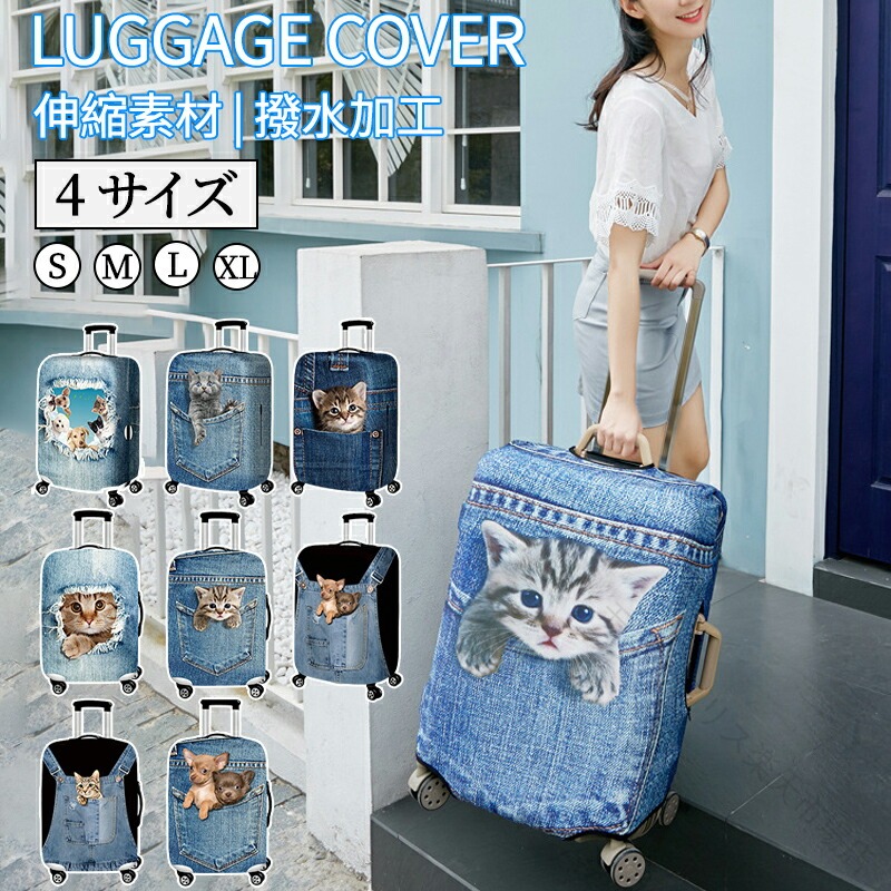 スーツケース カバー キャリーバッグ ケース キャリーケース ラゲッジ トランク ペット 猫 犬 伸縮 保護 汚れ 傷 防止 お洒落 旅行用品 新生活 視認性 抜群 区別 応援
