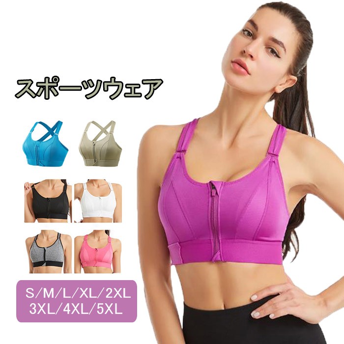 スポーツブラ 前開き フロントジッパー 大きいサイズ ノンワイヤー カップ付ブラトップ 揺れない スポブラ 簡単装着 ナイトブラ ブラトップ ボクササイズ ヨガ 筋トレ フィットネスジム