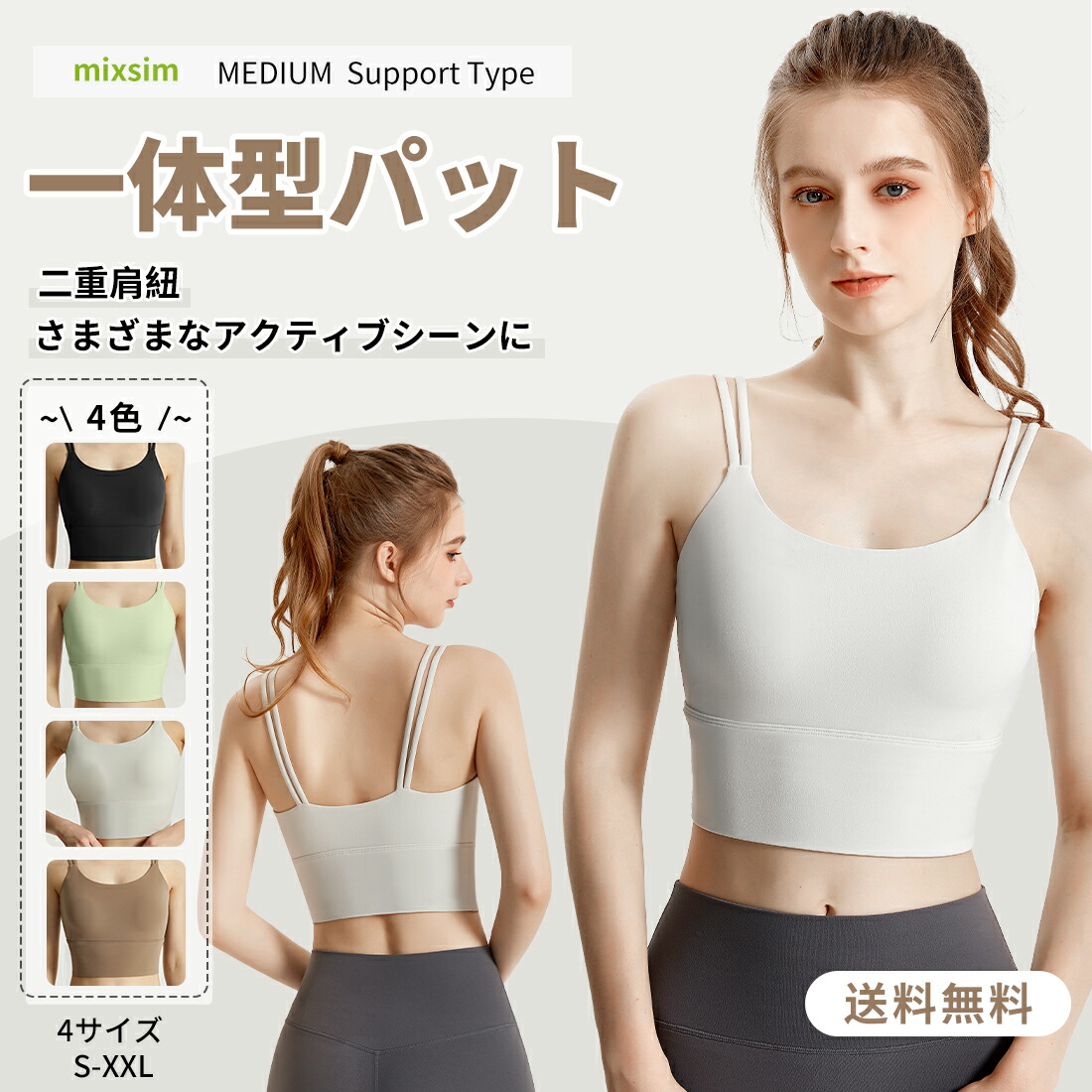 ヨガウェア 横流れ防止 カップ入り 無地 バストをふんわり 幅広の肩ストラップ フィット ズレにくく 通気性 薄手 アクティブ