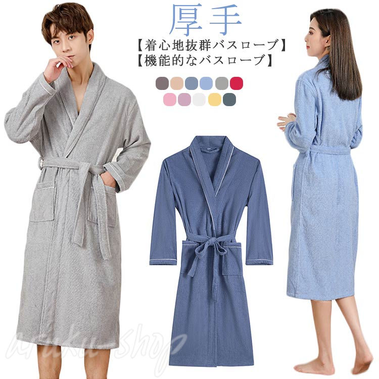 M-2XL 高級ホテル仕様 バスローブ バス メンズ 白 レディース タオル生地 速乾 長袖 吸水 ガウン お風呂上り 厚手 ルームウェア 春夏秋冬 部屋着 保温 ミモレ丈 バスタオル ホ 冷房対策