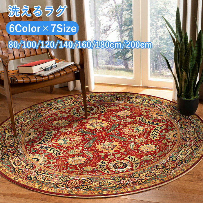 ラグマット 円型 モロッコ風 ラグカーペット ラグ 洗える 薄手 毛足が短い アンティーク ペルシャ風 賃貸 ナチュラル 大きめ 大判 絨毯 滑り止めマット フロアマット 子供部屋 室内 滑 リビング