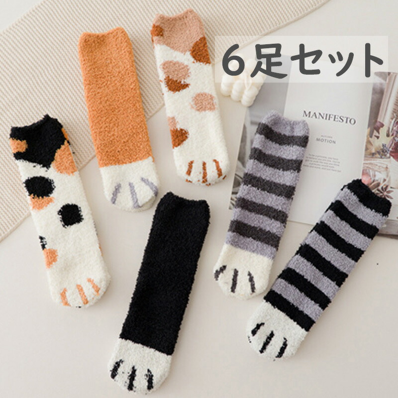 6足セット ネコの爪 靴下 秋冬 サンゴネル 可愛い おしゃれ 裏起毛 防寒 ソックス あったか もこもこ ふわふわ 部屋着 ルームウェア カジュアル ストレッチ 大人 メンズ キッズ シ レディース