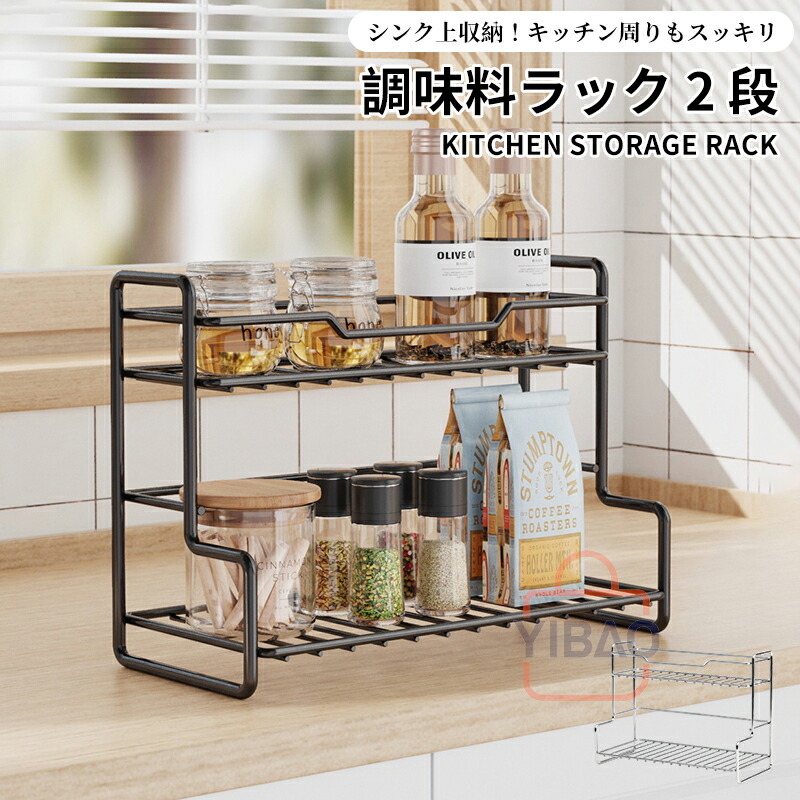 キッチン収納 ラック 棚 ボトルラック 調味料 スパイス スパイスボトル キャニスター レンジフード下 キッチン シンプル ブラック 調味料棚 台所収納ラック卓上ラック ボトルラックスパイ モノトーン