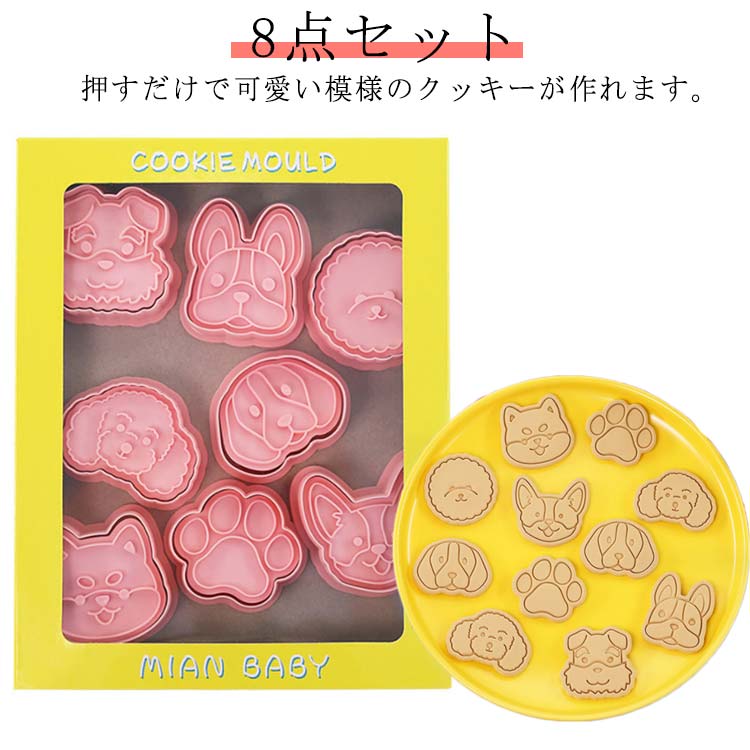 キャラクター 犬 スタンプ クッキー型 動物 おしゃれ 簡単 手作り かわいい アイシングクッキー 手作りキット 8個セット 製菓道具 ドッグ いぬ 製菓材料 人気 コ 美味しい