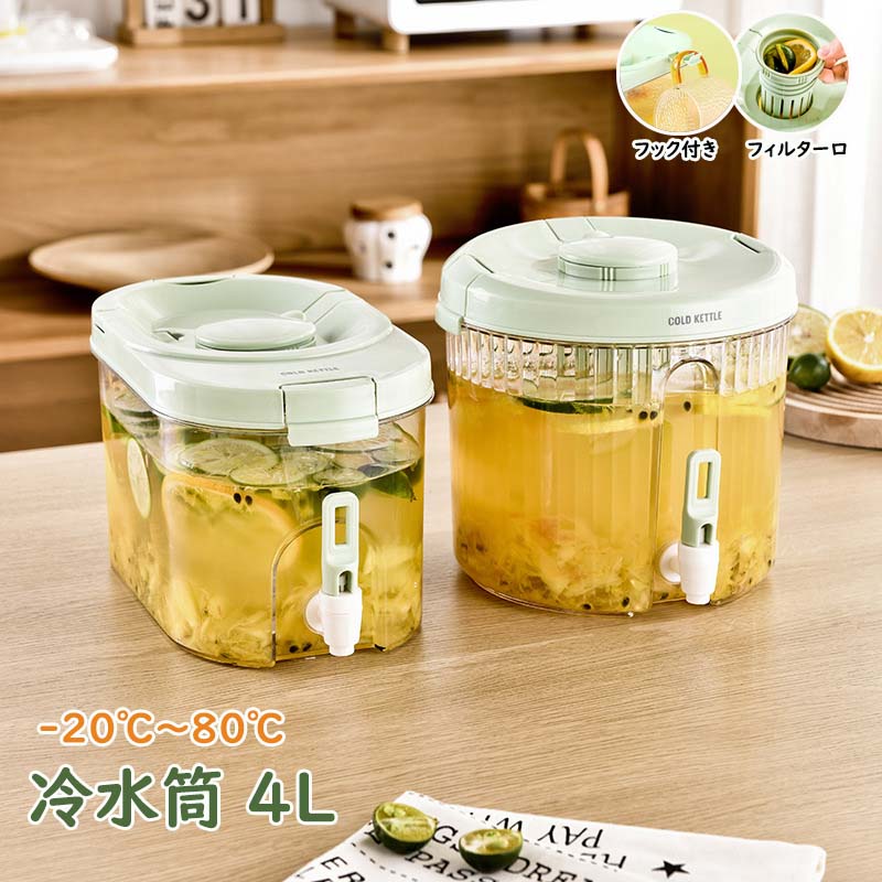 4リットル 大容量 冷水筒 横置き ドリンクピッチャー 蛇口付き 麦茶ポット 水差し 耐熱 冷蔵庫ポット お茶ポット ビール樽飲料ディスペンサー 洗いやすい キッチン用品 水タンク 水筒