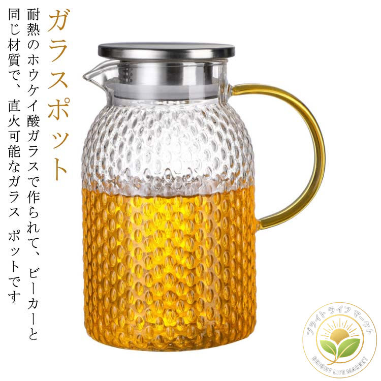 ガラスピッチャー 耐熱 1000ml 1200ml 1500ml ガラスポット ガラスケトル ピッチャー 麦茶ポット 耐熱ガラス 大容量 直火 ホウケイ酸ガラス ガラス
