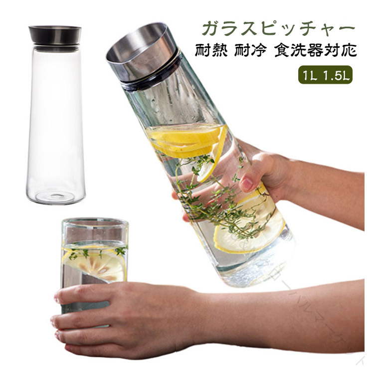 耐熱ガラス ピッチャー ガラス ピッチャー 水差し 冷水筒 ウォーターピッチャー ポット 麦茶入れ 1 1.5 1000 1500 紅茶ポット 洗いやすい 送料無料