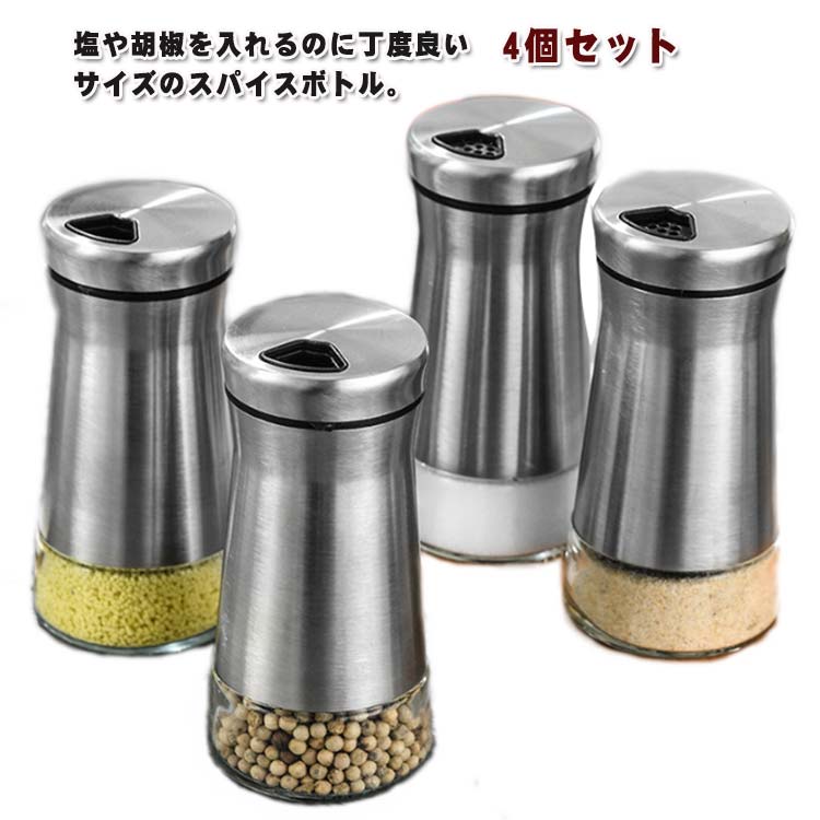 スパイスボトル スパイスホルダー ガラス製 4本入り 塩入れ スパイス入れ 調味料入れ 調味料ボトル スパイス容器 調味料保存容器 スパイス保存容器 調味料容器