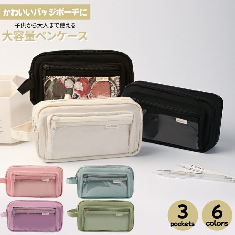 筆箱 韓国 ペンケース 透明窓 大容量 おしゃれ 3層 シンプル 多機能 可愛い メイクポーチ ふでばこ 中学生 高校生 大学生 女の子 小学生 子供用 男の子