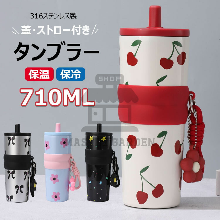 蓋 ストロー付き 保温保冷タンブラー 大容量710ml ステンレス製 再利用可能 漏れない ウォーターボトル ストラップ付き ポータブルコーヒーカップ 真空断熱タンブラー タンブラー 水筒 マグボトル