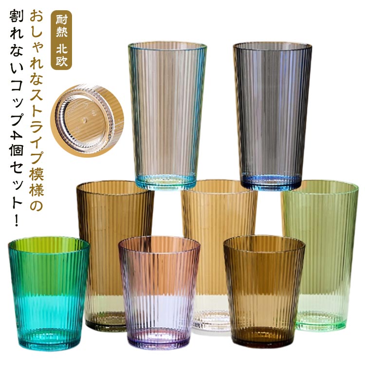 4個セット トライタン おしゃれ 400cc 耐熱 コップ ストライプ かわいい スタッキング グラス 割れない 食洗器対応 250cc タンブラー 業務用 プ 割れないタンブラー