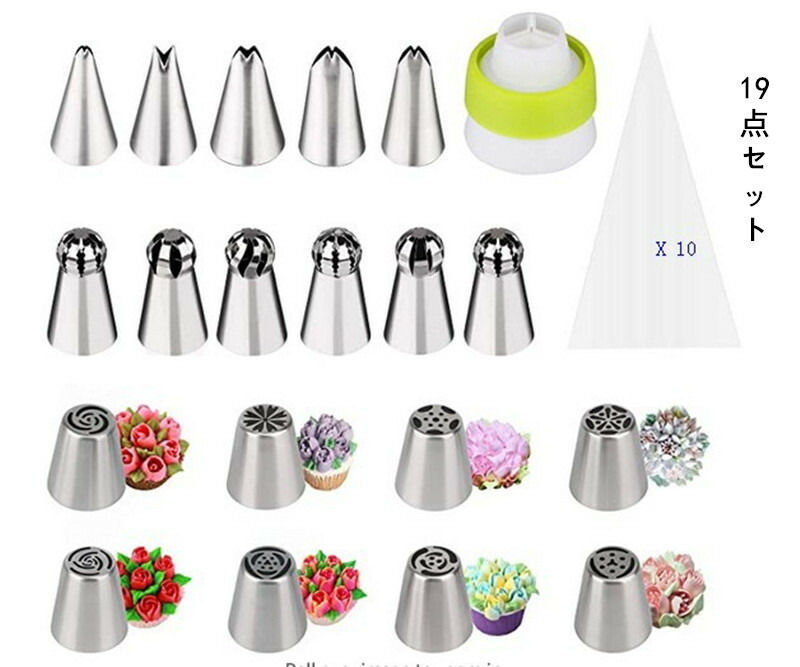 19点セット花型デコレーション作成器 絞り口 19絞り口金 フラワーデコレーションマウスセット ケーキデコレーション用品 お菓子作り道具 製菓道具 ケーキランドの パン作り道具 厨 ケーキビスケット用