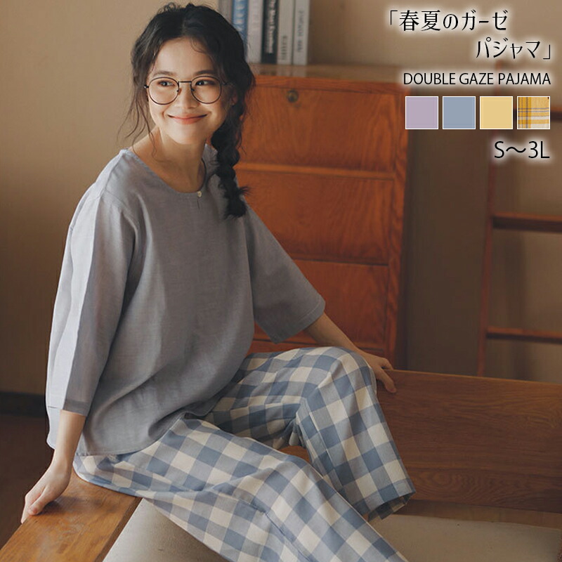 【送料無料】綿のダブルガーゼ素材で敏感肌にも優しいレディースパジャマ。半袖・長袖の2タイプ、柔らかな肌ざわりで春夏の快適な睡眠&部屋着にぴったり。