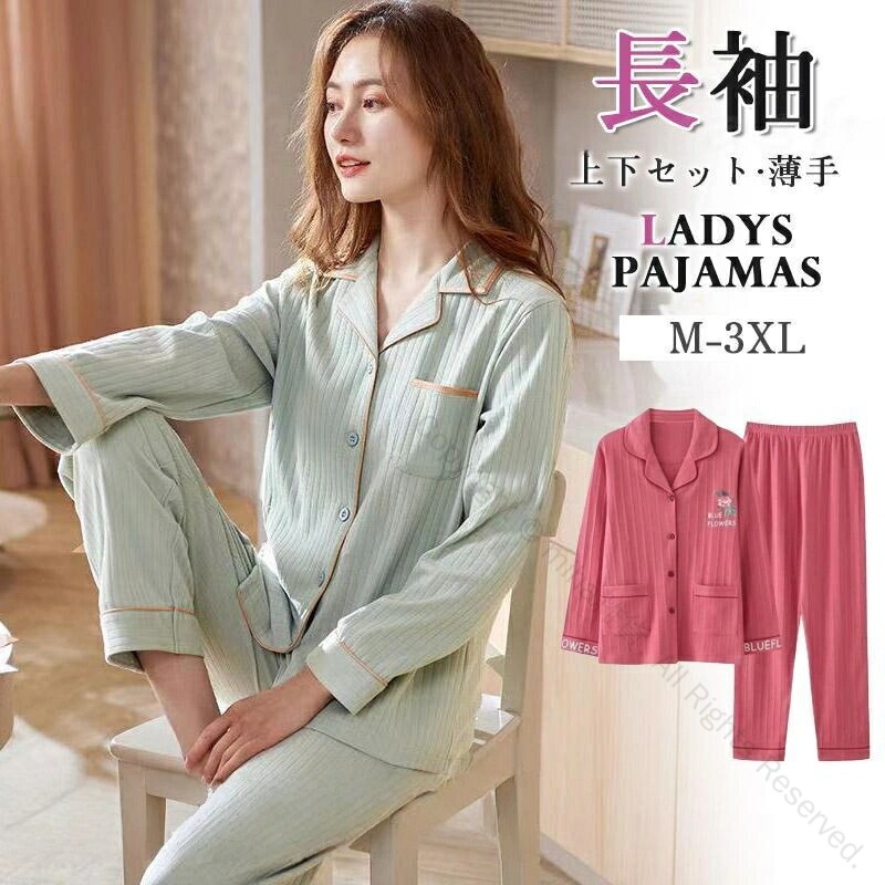 パジャマ ルームウェア レディース ロングパンツ 長袖 上下セット 部屋着 寝間着 綿 大きいサイズ 春秋 ゆったり 女性 長袖ルームウェア カジュアル ナイトウエア 寝巻き