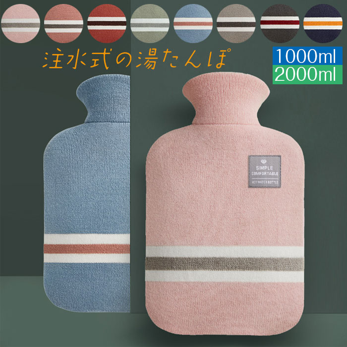 1000/2000 湯たんぽ ゆたんぽ ニット カバー付き 大容量 秋冬寒さ対策 暖かい やわらか 暖房器具