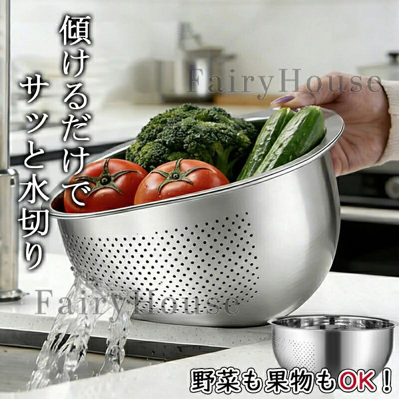 傾けるだけで水切り こめとぎボウル 19cm 22.5cm 26cm 人気 米とぎ ざるボウル お米洗い 米研ぎ 水切りボウル 耐熱ボウル 多機能ボウル シルバー 食洗機対応 ステンレスボ ステンレス