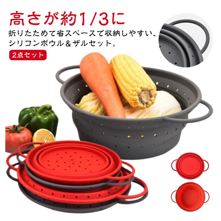 折りたたみ ボウル ザル セット シリコン 丸型 水切りざる 取っ手付き 吊り下げ収納 調理器具 キャンプ アウトドア キッチンツール