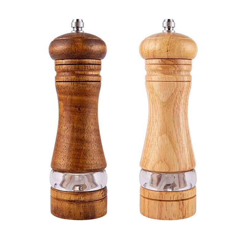 胡椒ひき ペッパーミル ペッパーグラインダー ミル 手動塩グラインダー 調節可能なセラミック 研磨ローターソルトミル スパイスミル 木製 アクリル製 胡椒ミルオーク材製 黒コショウ 岩 可視ウィンドウ