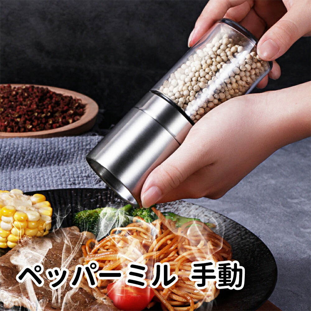 ペッパーミル 手動 塩 胡椒 ミル ゴマミル 小さい ソルト ガラス製 おしゃれ シンプルデザイン 岩塩 スパイスミル 耐熱ガラス ステンレス製 セラミックミル 軽い 調味料 結晶塩 粗さ挽き調節