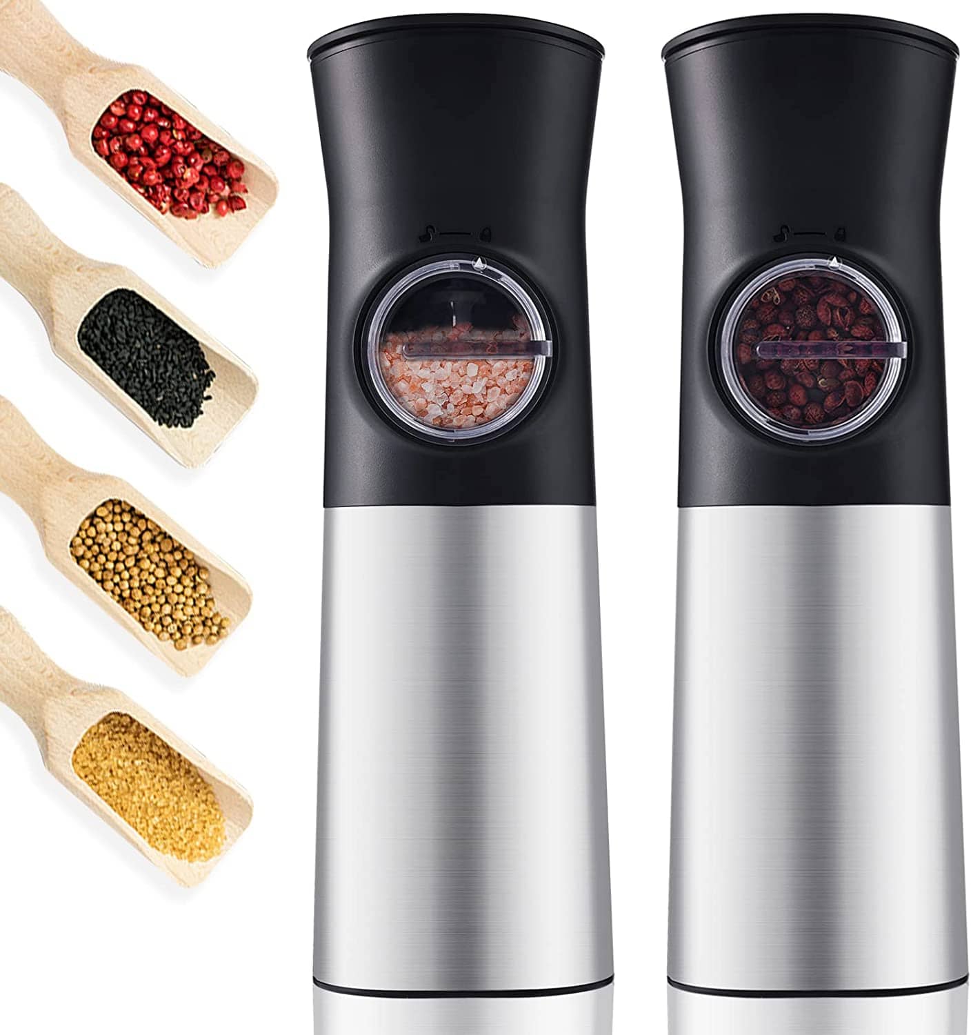 2本セット ペッパーミル 電動 重力感知式 オートスイッチ 胡椒 花椒 岩塩 ソルト スパイス用 ステンレス 粗さ調節可能 キッチン 調理 BBQ グラインダー