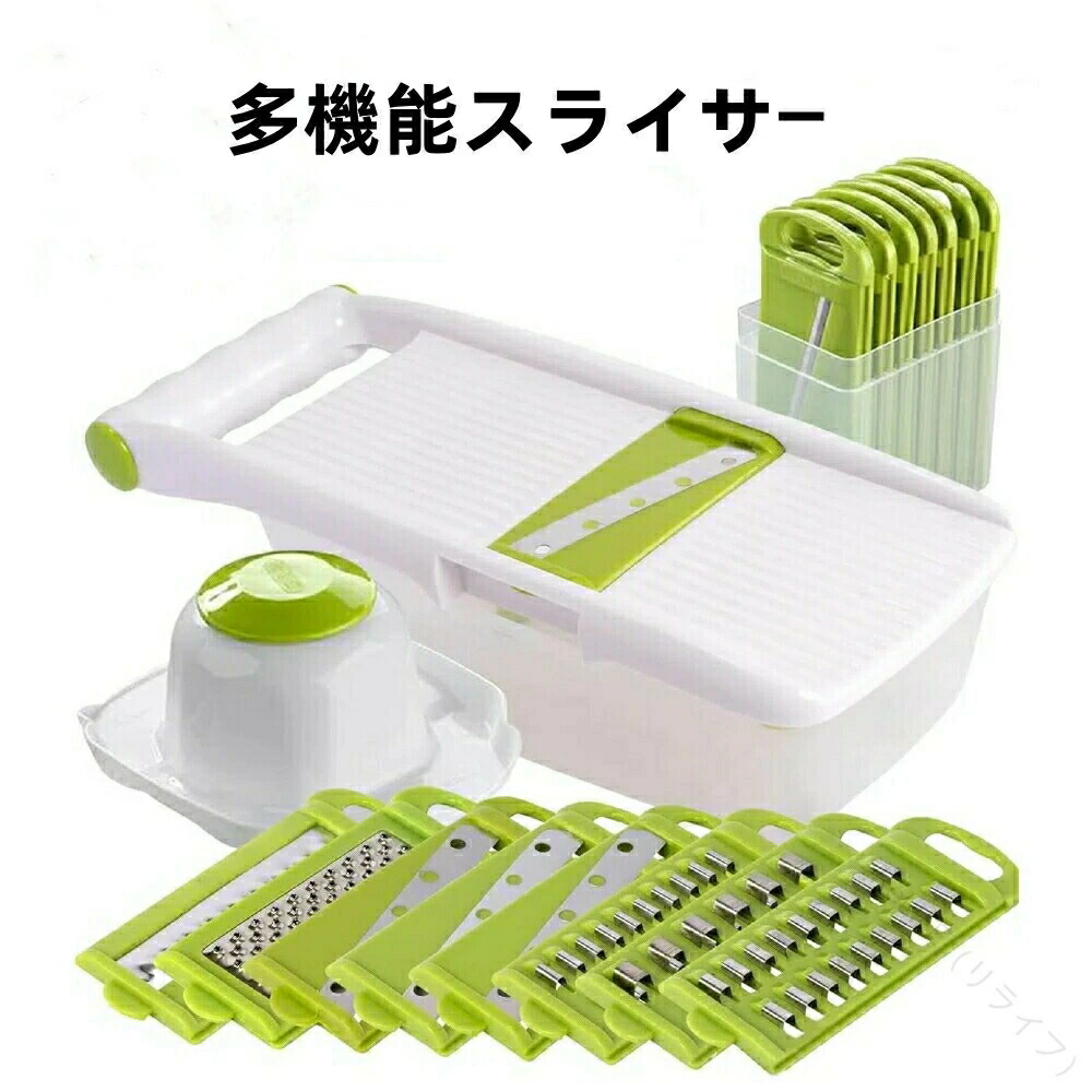 スライサー 千切り 野菜スライサー セット 多機能 おろし金 1台8役 グリーン キッチン用 多用途調理器具 食材準備簡単 便利ツール 人気のキッチングッズ 野菜カット器具
