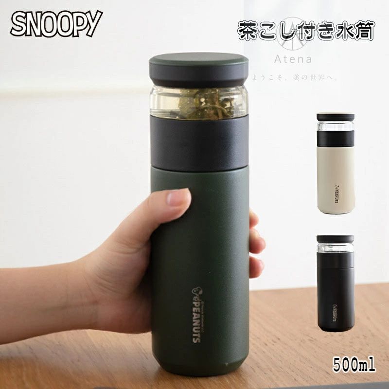 高品質 スヌーピー 水筒 子供用 大人用 キッズ 500ml ステンレスボトル 保冷 保温 ボトル 子ども お手入れ簡単 茶こし付き タンブラー お好みの茶葉 スリム 紅茶 魔法瓶 ハーブティー