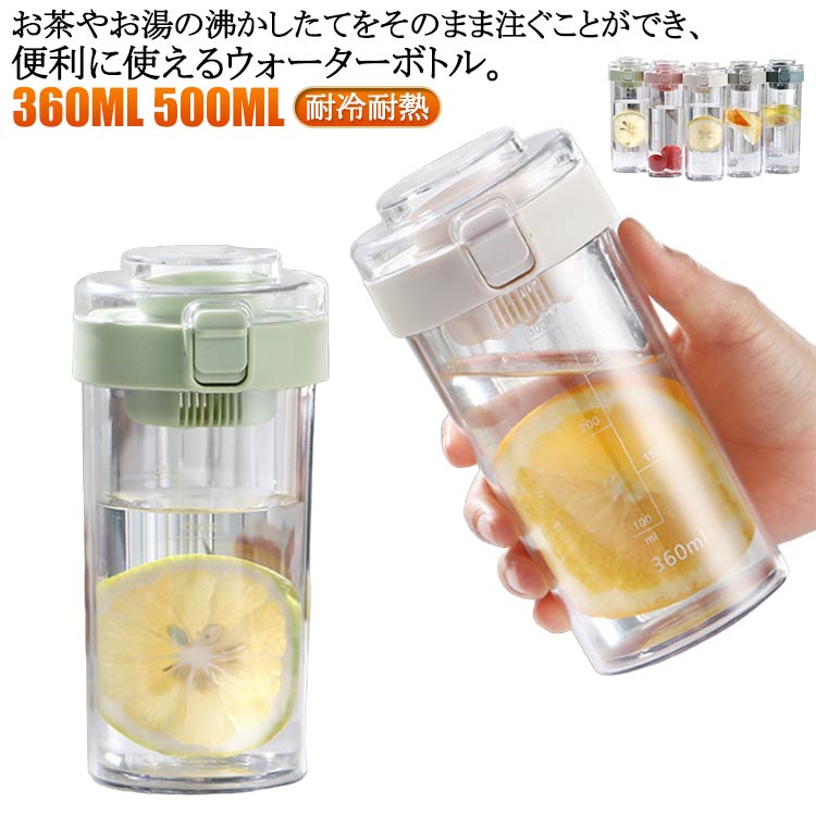 通勤 500ml 360ml 高い密封性 ウォーターボトル クリアボトル 耐冷耐熱 蓋つき 目盛り付き ワンタッチオープン 洗いやすい ボトル オ 通学