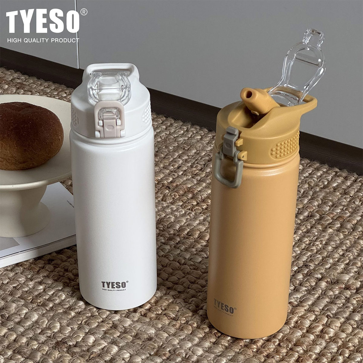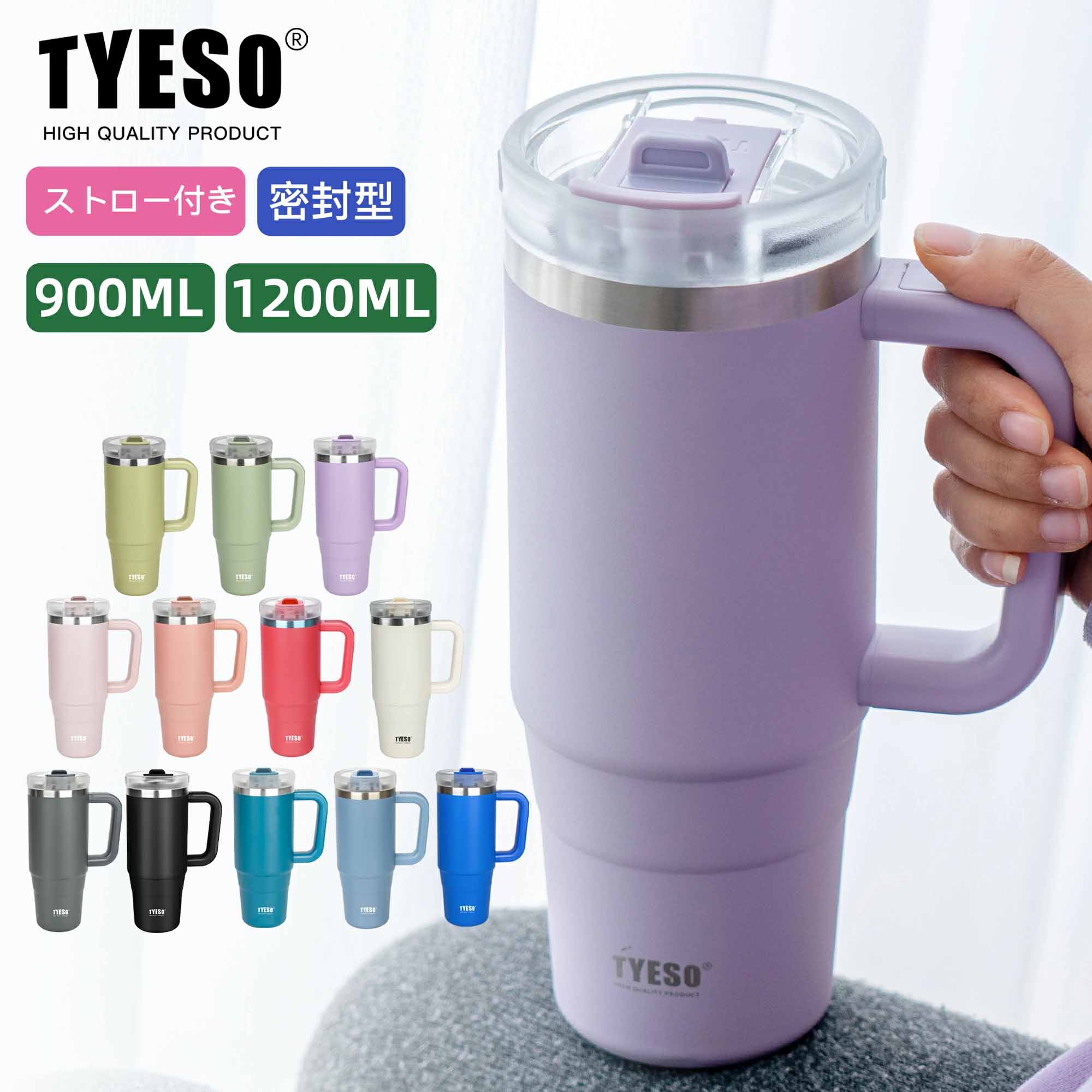 TYESO タンブラー プレゼント ストロー付き 蓋付き 大容量 ステンレス 二重構造 真空断熱 保温 保冷 おしゃれ ドライブ 車 1200ml 1L 1リットル結露しない 900ml