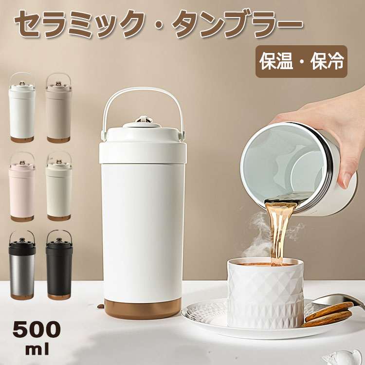 セラミック タンブラー 500ml ストロー付き 保温 保冷 水筒 蓋付き ストロー ウォーターボトル マグボトル 大容量 持ち運び 真空断熱 316セラミック トラベルカップ コーヒー