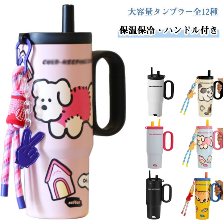タンブラー ストロー付き 水筒 大容量 蓋つき セラミック 保温 保冷 真空断熱 マグボトル 直飲み ハンドル付 持ち運び こぼれない 漏れ防止 コーヒー 通勤 オフィス アウトドア キャンプ 通学
