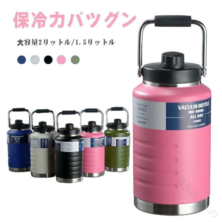 水筒 ステンレスボトル 2リットル 1.5リットル 大容量 保冷 保温 真空断熱 ハンドル付 軽量 直飲み スポーツボトル スポーツジャグ 広口 魔法瓶 アウトドア 持ち運び 遠足 通学 学校 運動会