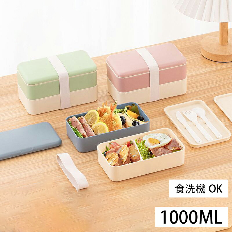 お弁当箱 おしゃれ 弁当箱 1300ml 2段 ランチボックス 食洗機対応 電子レンジ対応 かわいい 可愛い おすすめ シンプル 大人 女子 レディース ホワイト 北欧 抗菌 通勤 ゴムバンド