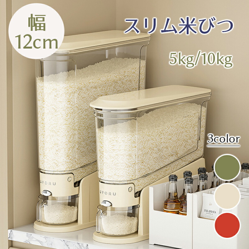 米びつ カップ付き スリム ライスストッカー 米櫃 こめびつ お米入れ お米収納 密閉容器 貯蔵タンク 軽量 大容量 5kg 10kg 無洗米対応 虫除け 無洗米 鮮度保ち 密閉性アップ防湿