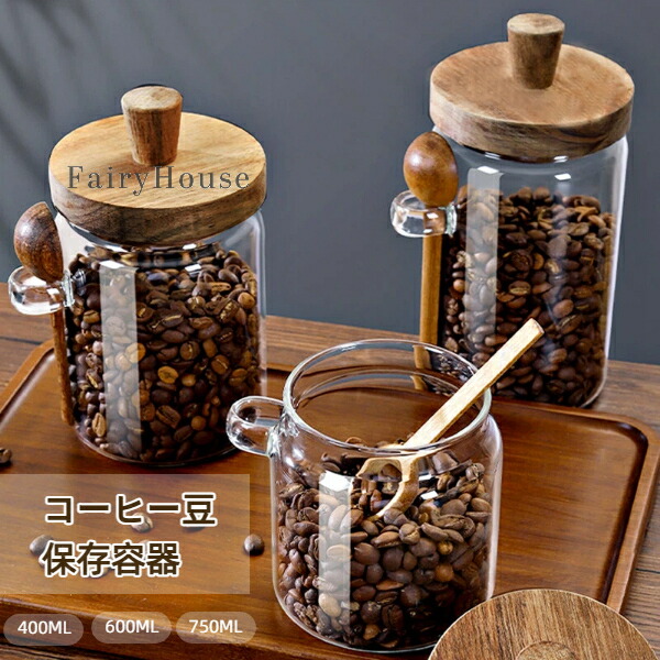 コーヒー豆 茶葉 スパイス保存容器 高硼珪ガラス 木蓋付き スプーン付き 密封防湿 キッチン収納 雑穀 豆類 食品ストッカー 調味料ボトル 穀物